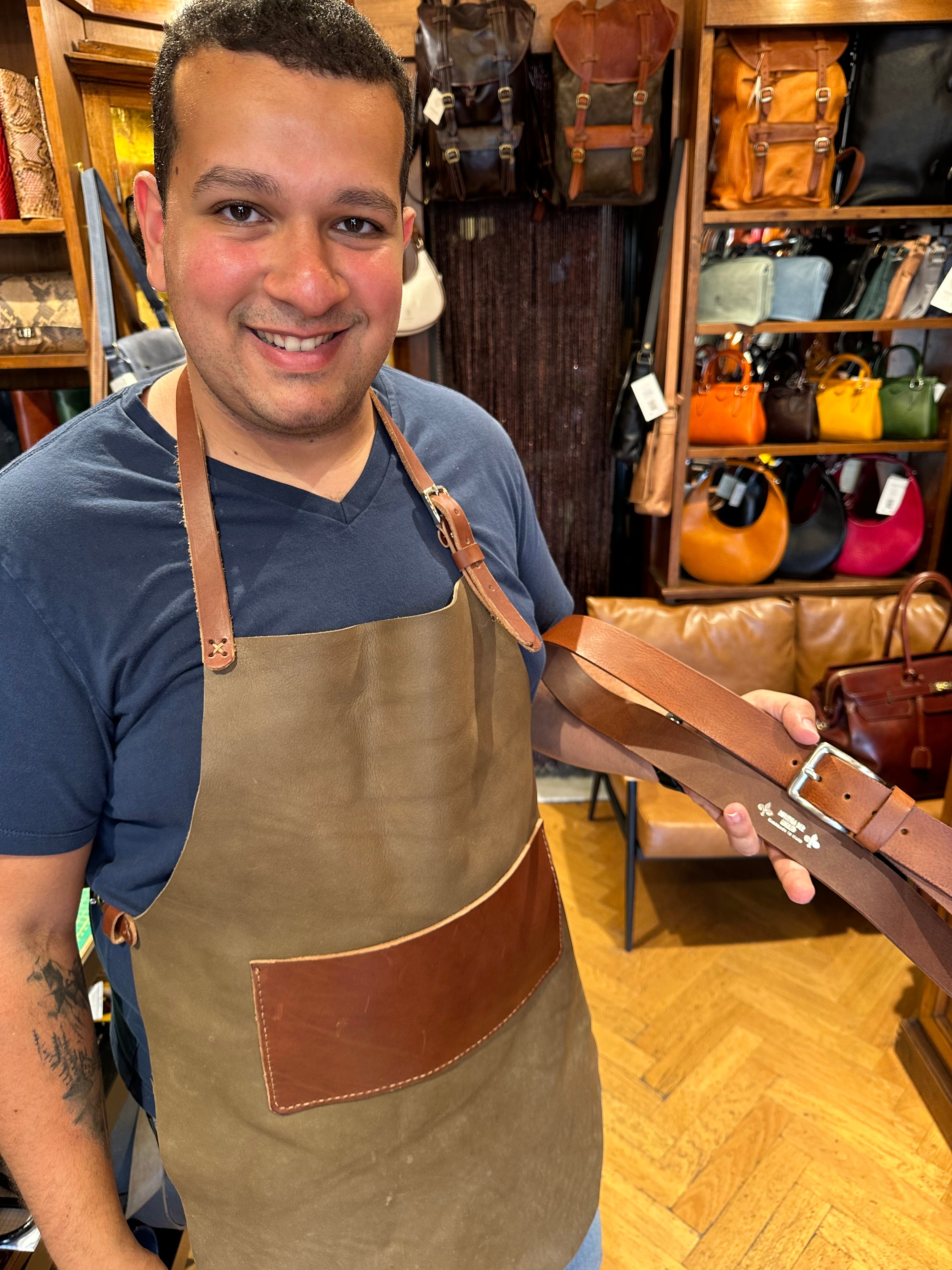 La fibbia è 100% Made in Italy, Nickel Free, sicura e anallergica, adatta anche a chi ha sensibilità particolari. Ogni cintura viene tagliata e rifinita a mano nel nostro laboratorio in centro a Firenze, uno dei pochi rimasti a produrre in loco.